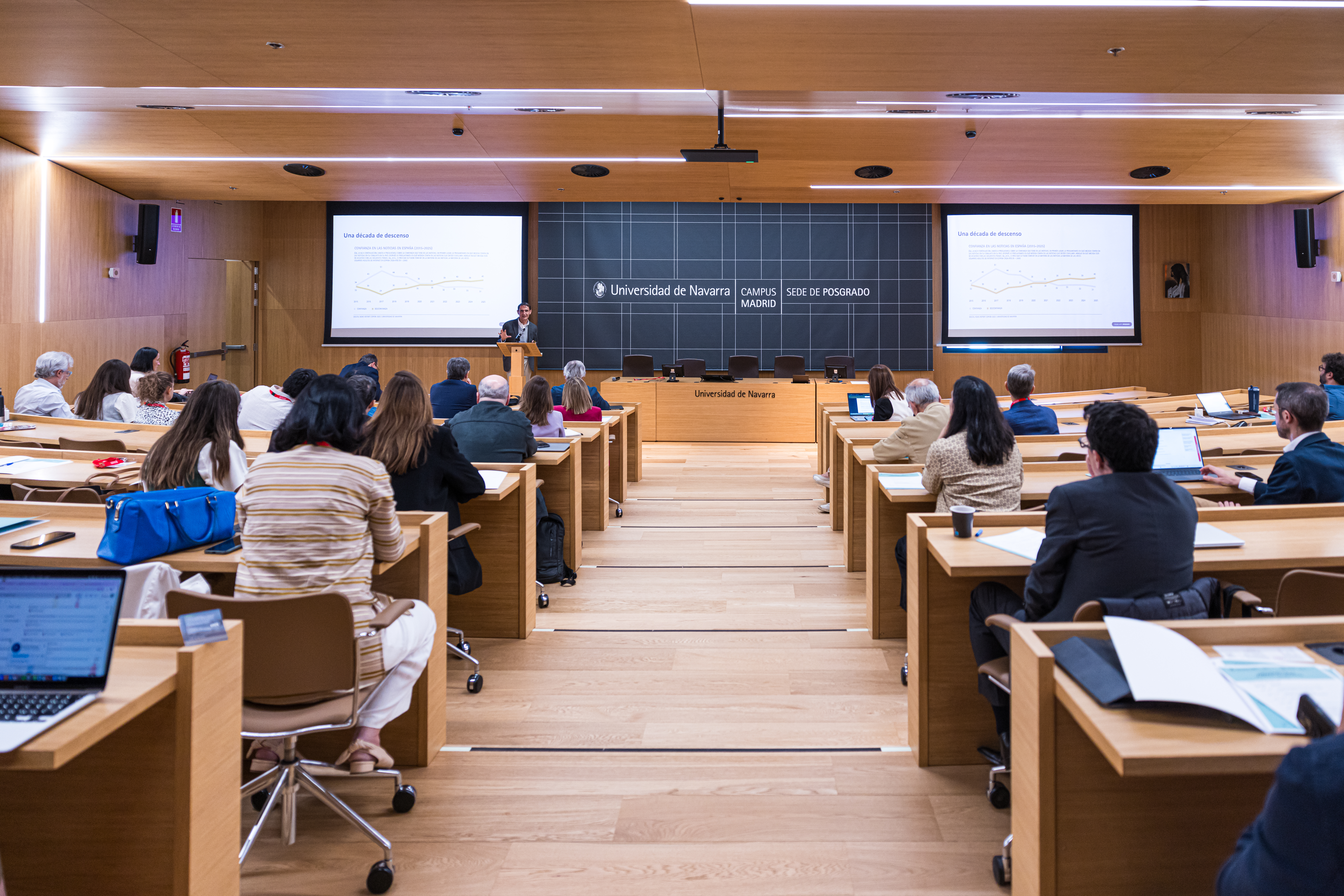 Un ejercicio de transparencia que debería redundar en la credibilidad de los propios medios, que viven desde hace años un periodo de declive y desafección, con una caída sobre el interés en las noticias de 34 puntos en 10 años (del 85% al 51%), según el Digital News Report 2024. Sobre este aspecto intervinieron los profesores Francisco Javier Pérez-Latre, director del Máster en Gestión de Empresas de Comunicación Megec, y Alfonso Vara, profesor titular de Periodismo y director del informe Digital News Report España.